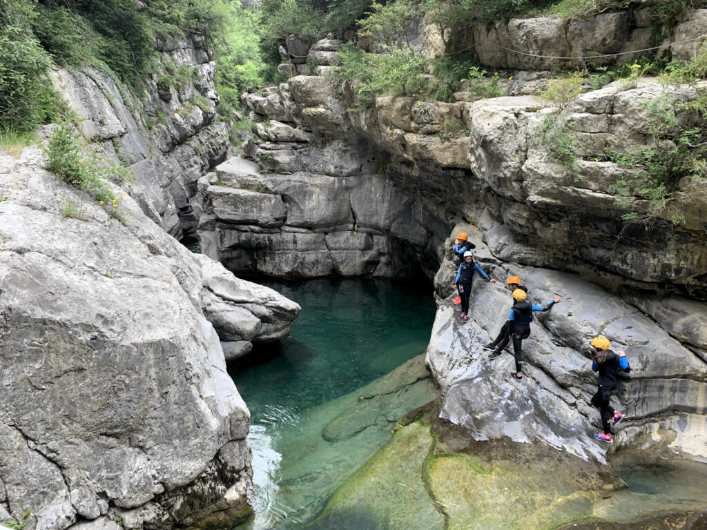 Día 1 Barranco Pequeño Mascun: Comienza tu jornada explorando uno de los barrancos más destacados de la Sierra de Guara. Desciende por cascadas cristalinas, deslízate por toboganes naturales y sumérgete en pozas de aguas turquesas mientras te adentras en esta región única.